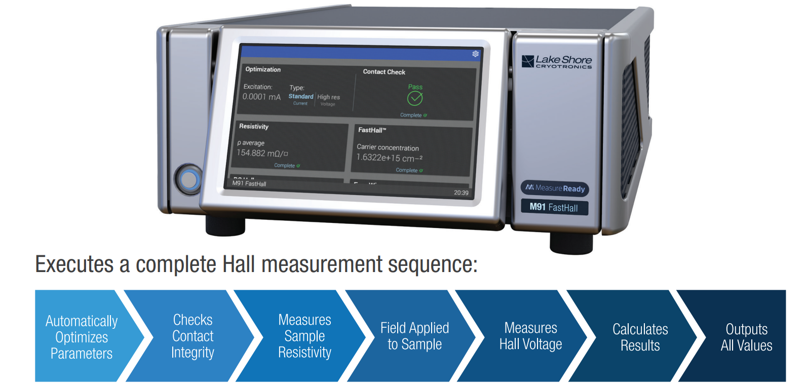 An all-in-one Hall analysis system, the M91 Fast Hall controller can be used with any magnet system and adds state of the art Hall measurement capabilities to any lab. The unique and powerful software and computation of the M91 removes the need for polarity switching of magnets and enables incredibly fast and accurate measurement even for low mobility samples.