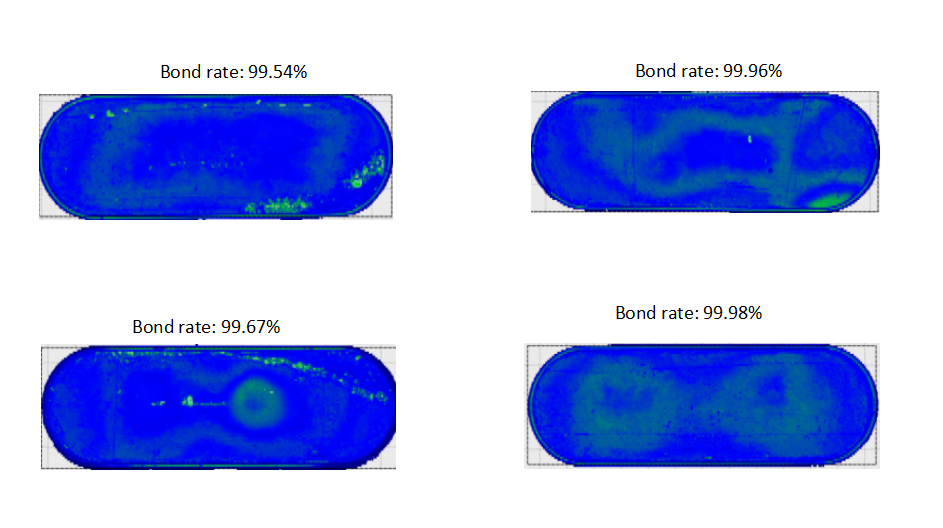 For indium bonding, the thickness of indium we controlled is 0.2-0.3mm, and we leave 0.2-0.3mm bonding gap between target tiles, and 95% bonding rate can be guaranteed form most targets bonding. C-scan report is available upon request.