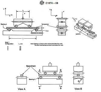 GC1674-22 determines the flexural strength (modulus of rupture in bending) at ambient conditions of advanced ceramic structures with 2-dimensional honeycomb channel architectures. Bend fixtures are need to perform the four point bend tests required by ASTM C1674. TestResources GC1674-22 is a four point bend fixture with self aligning bearings.