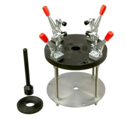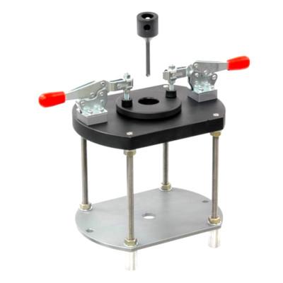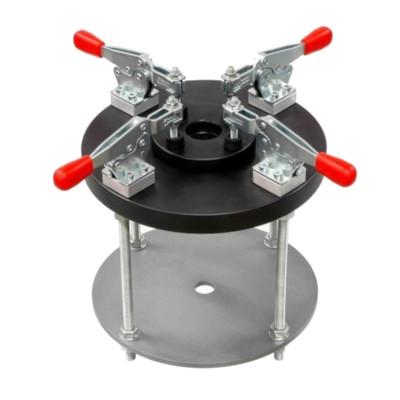 - Test material is held by clamping rings and subjected to biaxial stresses in compression