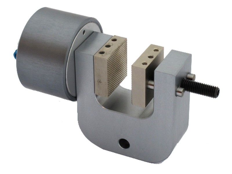 Pneumatic grips, or air grips, use air pressure to provide a simple and efficient method to clamp test specimens. They apply to situations where rapid clamping and quick sample insertion are needed. They also serve test requirements where the material shrinks and a screw action grip loses its grab. Air grips adjust to the changing conditions and hold regardless of sample deformation. Jaws adjust position to handle specimen thickness so force remains centered with the grip body. Multiple interchangeable jaw faces are available in various sizes and surfaces. Most grips can be outfitted with smooth ground, rubber-coated, serrated or diamond cut and wave action.