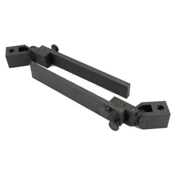 GC273-193 is specially designed to meet the requirements of ASTM C273; shear testing of sandwich core materials. The test specimen is bonded to the inside faces of the fixture. The thickness of the test specimen and fixture must be such that the line of tension or compression passes through the corners of the test material. Compression fixtures are also available for the C273 test. Reference ASTM Standard C 273, 2000, Standard Test Method for Shear Properties of Sandwich Core Materials, Drawing is copyright ASTM International, West Conshohocken, PA, 2000,