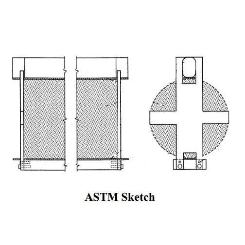 This fixture is specifically designed for determining the split strength of cylindrical concrete following the test practices of ASTM C496. The fixture has a bearing plate that transmits the load from the test machine to the test specimen. ASTM defines specific tolerances for the bearing plate. The bearing plate is mounted with a jig that holds the concrete test specimen and the loading plate. Reference: ASTM Standard C496, 2004, Standard Test Method for Splitting Strength of Cylindrical Concrete Specimens, Drawing is copyright ASTM International, West Conshohocken, PA, 2007.