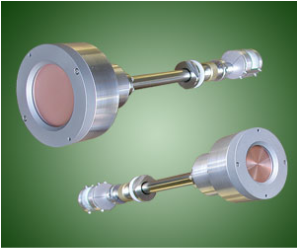 Coating inside tubes can be difficult since most sputter sources are too large and not end mounted. AJA has developed low profile, rectangular magnetrons for 5" and 8" long targets.with long support tubes. By inserting the source into the end of a rotating, tubular substrate and moving either the source or the substrate in a linear fashion, the inside of the tube can be uniformly coated. AJA also has custom designs for small conical target units for tubes as small as 2" in diameter.