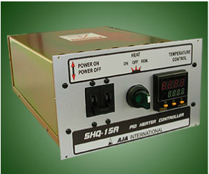 AJA manufactures two PID temperature controller/power supply units: the SHQ-15A (up to 2500 Watts) and the SHQ-25A (up to 5000 Watts). Both require 190 V - 240 V single phase power input and deliver +/- 1°C temperature stability and feature auto-tuning, external interlock and local/remote selector switch. Both models are half rack width x 3U. 19" rack adapters are available from stock for these compact units. The controller also allows pre-programming (2) sets of PID values for seamless transition between low and high temperatures without re-tuning.