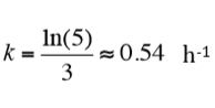 The sample with less culture lags about 3 h behind the other sample as the microorganisms with lower initial concentration take longer time to multiply to reach a certain number of bacteria (and a certain thermal power). As the ratio between the initial concentrations was 5 and it took 3 h for the lower concentration to reach the level of the higher one, the time constant of the exponential growth can be inferred easily from solving the equations for exponential growth: