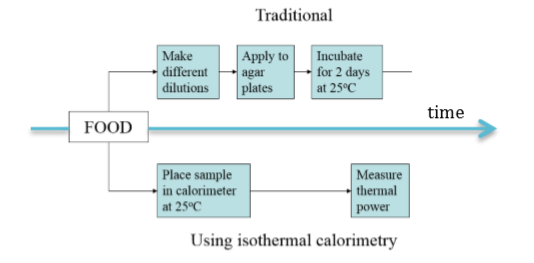 The comparison between the traditional plate count approach and calorimetry is shown schematically in Fig. 5 below.