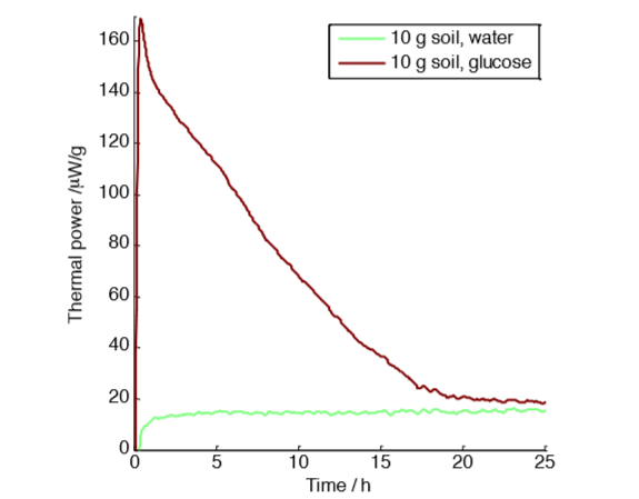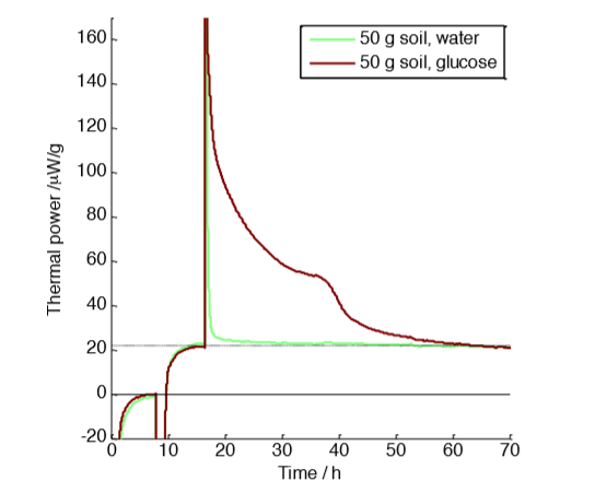 A common experimental procedure in soil science is to use addition of glucose to compare  the biological activity of different soils. Isothermal calorimetry is an excellent technique to study this. Some examples of glucoseamendment studies used in calorimetric soil measurements are found in references [2; 3; 4; 5; 6].