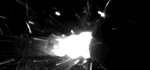 Sparkler without VisiBrite: Conventional high-speed video of the fireworks display. The flame is overexposed (white) and the area not under fire is underexposed (black).