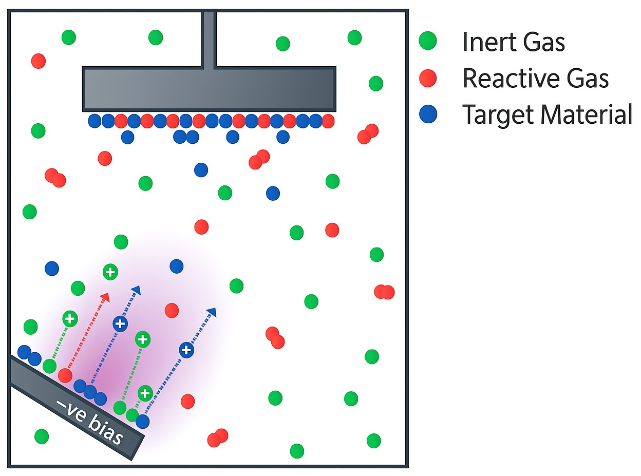 • Reactive Gas: A gas like O₂, N₂, or CH₄ is added to the chamber.