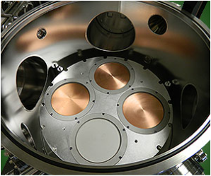 (5) con-focal A320-XP 2" UHV sputter sources with in-situ tilt, (1) normal incidence A330-XP-3” UHV sputtering source for high rate applications, CTI-8 cryopump, 850°C rotating substrate heater with RF bias, computer control & load-lock for 100 mm Ø substrates.