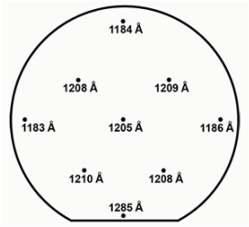 The ATC Series Thin Film Deposition Systems can be configured for con-focal, direct, and off-axis deposition. Con-focal deposition with in-situ tilt sputter sources (AJA pioneered and developed this concept in 1991) can deliver uniformity of better than ± 2% on substrates twice the diameter of the targets. Often ± 1% or better is achievable. A typical deposition profile with SiO2 on a 6" diameter Si wafer is shown.