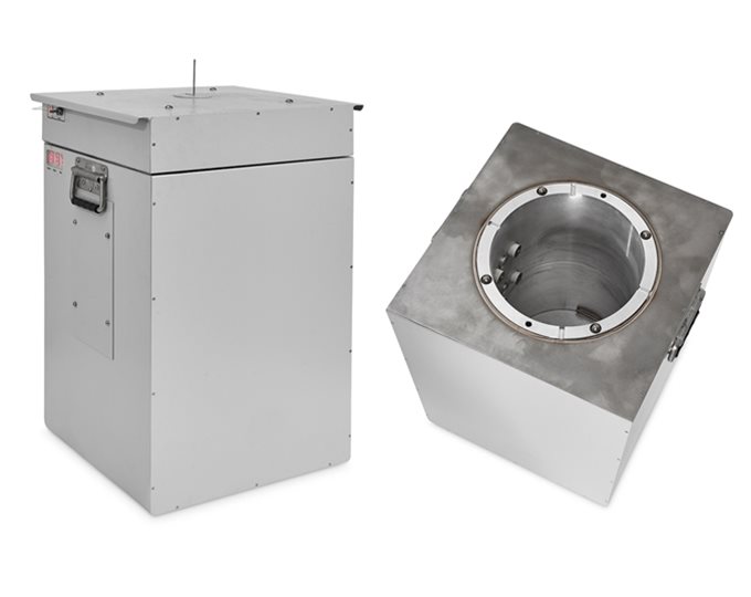 - A larger and stronger blast box / containment vessel is supplied with built-in fume extraction.