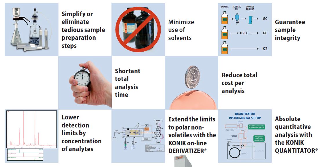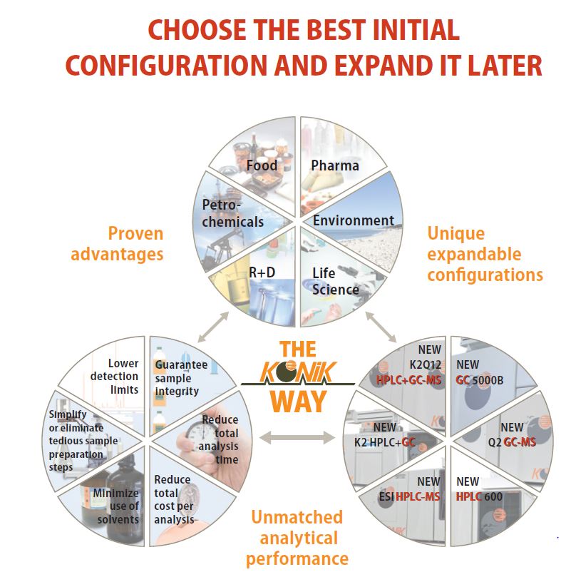 KONIK의 K2 HPLC+GC와 K2Q12 HPLC+GC-MS는 혁신적으로 개발되어 양산되는 유일하고도 진보적인 유럽 제품입니다.