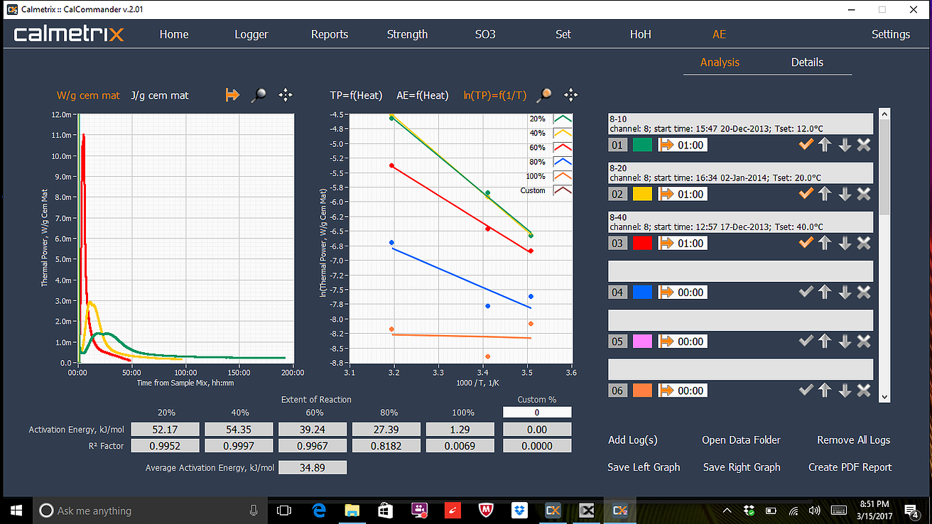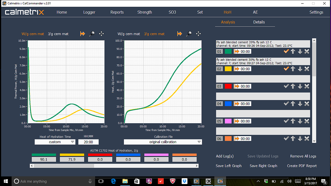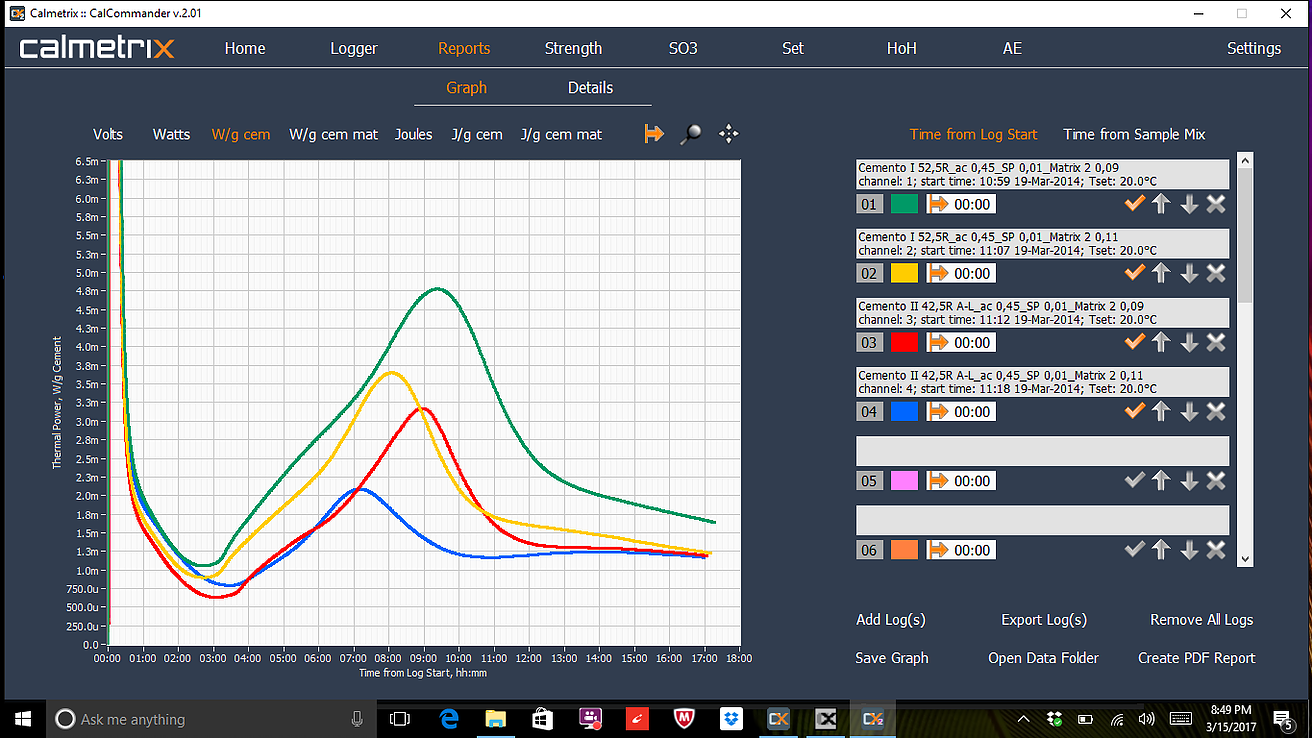 I-Cal Reports는 기존 실험 곡선을 검색하고, 곡선의 일부를 확대하여보다 자세한 분석을 수행하고, 포괄적인 보고서를 작성하거나 그래프를 이미지로 저장하는 데 사용됩니다. 그래프는 전력, 에너지 또는 시멘트, 시멘트질의 단위 중량으로 표준화된 전력 및 에너지로 표시 될 수 있습니다. Microsoft Excel 또는 OpenOffice와 같은 스프레드 시트 응용 프로그램과 호환되는 형식으로 데이터를 내보낼 수도 있습니다.