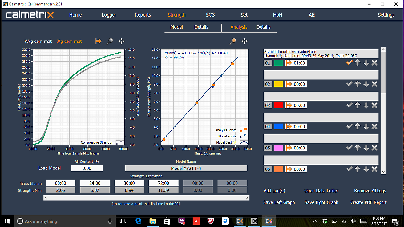 a. 물성 시험이 어려울 때 압축 강도 compressive strength)를 예측합니다. I-Cal Strength 는 주어진 혼합물의 열량 측정 곡선과 압축 강도 값 사이의 상관 관계 (correlation)를 구축하는 데 도움이됩니다. 본 상관 관계 (correlation)는 동일한 믹스 디자인으로 테스트 할 때마다 압축 강도를 예측하는 데 사용됩니다.