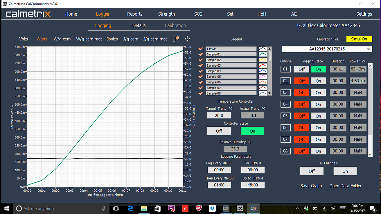 I-Cal Logger는 열량계의 구동에 사용됩니다. 데이터 저장을 시작하거나 중지하고 heat curve와 함께 저장될 실험 관련 데이터를 캡처 할 수 있습니다. I-Cal Logger는 전력, 절대값으로써 에너지, 또는 시멘트의 단위 중량 또는 시멘트질 질량으로 기록하고 표시합니다. 데이터를 기록하는 동안 임시 보고서를 작성할 수도 있습니다.