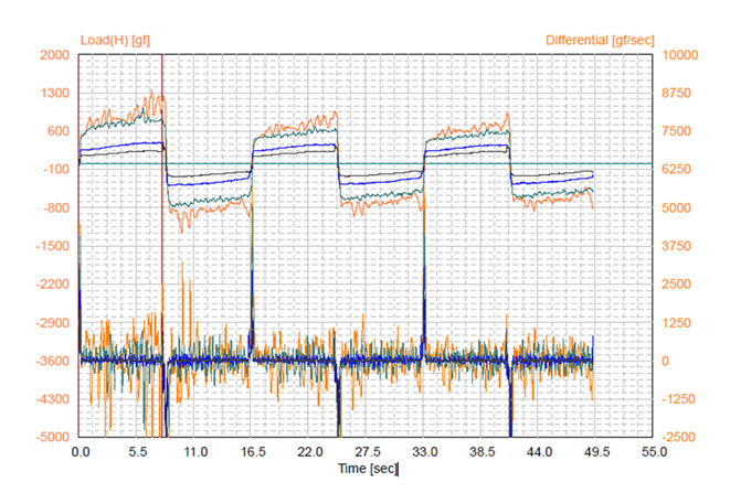 수직축: 1 gf (10 mN) 횡축: 2 gf (20 mN) |