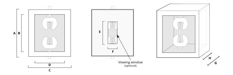 Due to the unique nature of environmental testing, all chambers are designed to customer requirements in a wide variety of widths, depths, heights and configurations in order to fit the test space and specifications. Multi-sample fixturing can be accommodated within one chamber with the proper configuration. Getting the right chamber dimensions is an important step in the configuration process. Your sample, grips and pull rods might all fit, but once you actually begin running your test, you might end up with a deficit. We take extra time at this step to ensure your chamber meets all of your test space requirements including sample elongation, maximum travel and load frame restrictions.