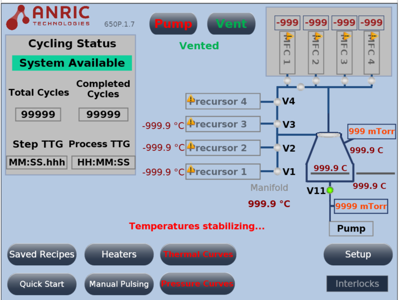 - Substrate temperatures from 40 to 450 °C ± 1 °C; Precursor temperatures from RT to 175°C ± 2°C (w/ heating jacket)