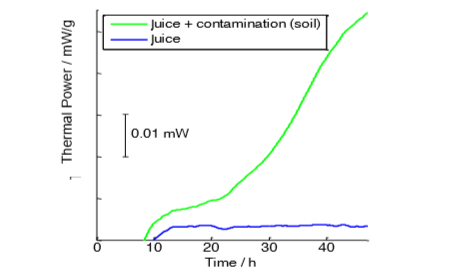 Calorimetry measurements such as these, on juices produced with different pasteurization procedures, preservatives and their concentrations, pH or other production variables can be used to easily identify the best method to extent shelf life.