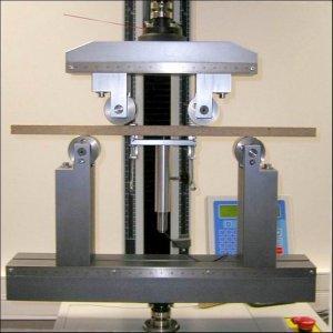 Flexure tests are generally used to determine the flexural modulus or flexural strength of a material.  A flexure test is more affordable than a tensile test and test results are slightly different. The material is laid horizontally over two points of contact (lower support span) and then a force is applied to the top of the material through either one or two points of contact (upper loading span) until the sample fails. The maximum recorded force is the flexural strength of that particular sample.