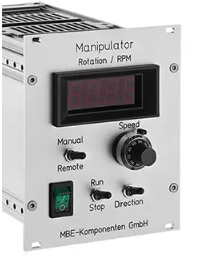 The Manipulator Control Unit - MCU provides the power for the motor, which rotates the substrate or substrate holder of a manipulator. Manual and remote control of rotation speed, direction of rotation and start/stop is possible. The control signals can be set manually, with TTL signals or with external relays. For remote setting of the rotation speed an analogue signal can be used optionally.