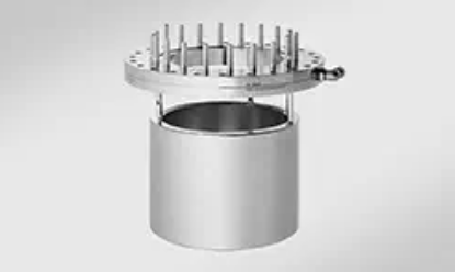 The CS 200-150T is an example of a vertically mounted (face-down) cooling shroud, typically used for substrate manipulators, wafer heaters or measurement equipment in MBE systems.