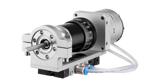 The RPM is a drive unit for rotary shutter motion. Its torque reaches 0.85 Nm at 6 bar air supply.