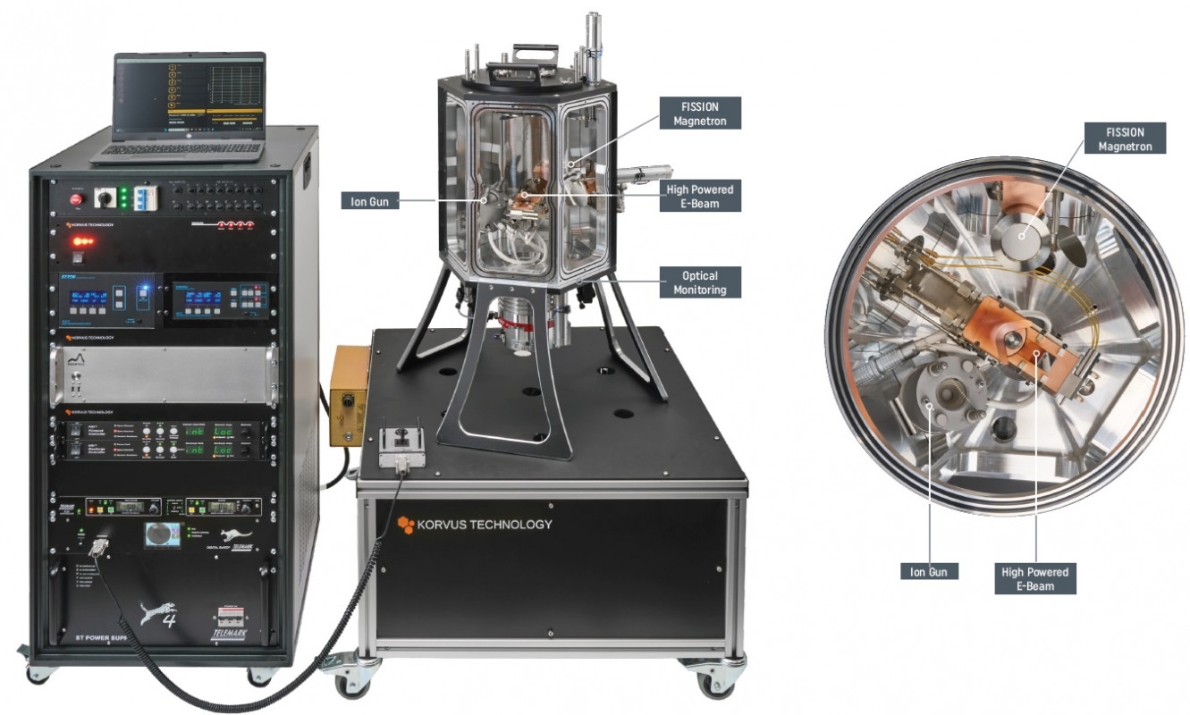 HEX-L with Magnetron Sputtering, Ion Gun, High Powered E-beam and Optical Monitoring