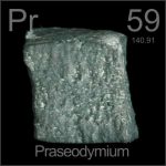 Praseodymium is a chemical element that originated from the Greek ‘prasios didymos’ meaning green twin. It was first mentioned in 1885 and observed by A. von Welsbach. “Pr” is the canonical chemical symbol of praseodymium. Its atomic number in the periodic table of elements is 59 with a location at Period 6 and Group 3, belonging to the f-block. The relative atomic mass of praseodymium is 140.90765(2) Dalton, the number in the brackets indicating the uncertainty.