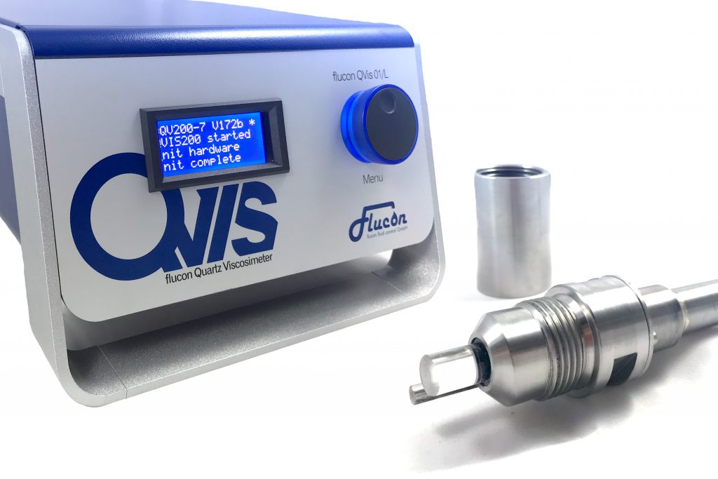 The handling of this type of viscosimeter is very simple and the required set-up time was reduced to a minimum. Specific measuring vessels are not needed and no problems with filling up narrow gaps or capillaries arise. As soon as the top of the measuring head (quartz and temperature sensor) is immersed into the measuring fluid, the QVis 01/L carries out accurate viscosity measurement in a large measuring range (1 to 10.000 mPas).
