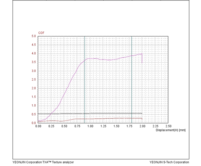 수직축과 횡축에서 측정된 하중의 비로 COF를 자동으로 산출합니다.