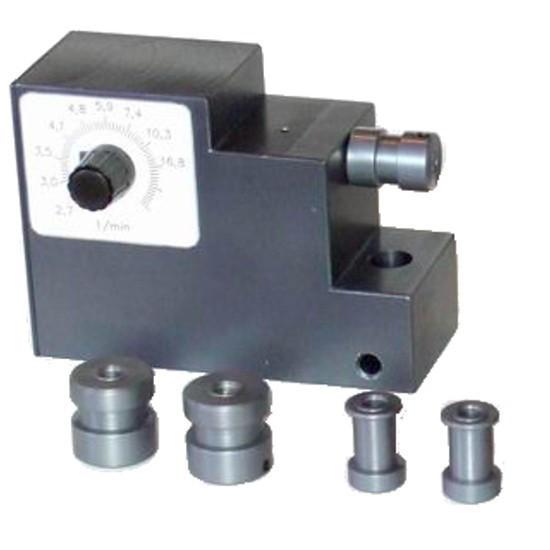 The motorized O-ring tensile test fixture was designed to meet the ASTM D1414 test standard. The fixture is powered by a small motor that rotates the spools that are holding the O-ring. It is used to test the gaskets, seals and valves by determining the tensile strength, breaking force, and elongation of a wide variety of O-rings. The spools are interchangeable and come in a variety of sizes that allow you to test different sized O-rings.