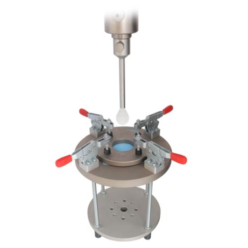 The GD5748-174 meets the requirements of ASTM D5748 for testing the puncture resistance of stretch wrap film. The fixture consists of a 19mm (0.75 in.) diameter, pear-shaped, Teflon coated probe and clamping fixture having a 102 mm (4 in.) diameter opening and 200 mm depth. Reference ASTM Standard D 5748, 2007, Standard Test Method for Puncture Resistance of Stretch Wrap Film, Copyright ASTM International, West Conshohocken, PA, 2007.