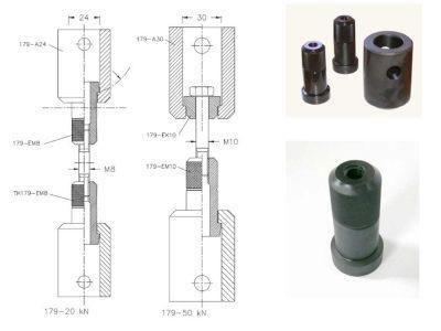 ASTM F 1147 (F-1147) determines the tension testing of coatings adhering to dense metal substrates at ambient temperatures. It assesses the degree of adhesion of coatings to substrates, or the internal cohesion of a coating in tension normal to the surface plane. TestResource fixture GF1147-179 performs tensile tests on calcium phosphate specimens.
