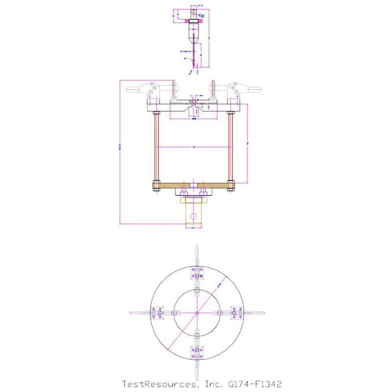 The GF1342-174A puncture fixture meets the requirements of ASTM F1342 for testing the puncture resistance of protective clothing materials by test method A. The puncture probe has dimensions of 2.03 mm width, 50 mm length, and 3.53 mm long tip with 0.25 mm radius and 26 degree taper. As specified in the standard, specimen support plates have a 6.4 mm puncture guide hole and the assembly base depth of 165 mm allows the required 25 mm travel distance. Reference ASTM Standard F 1342, 2005, Standard Test Method for Protective Clothing Material Resistance to Puncture, ASTM International, West Conshohocken, PA, 2005.