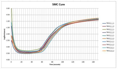 SMC resistance during cure, on a logarithmic scale