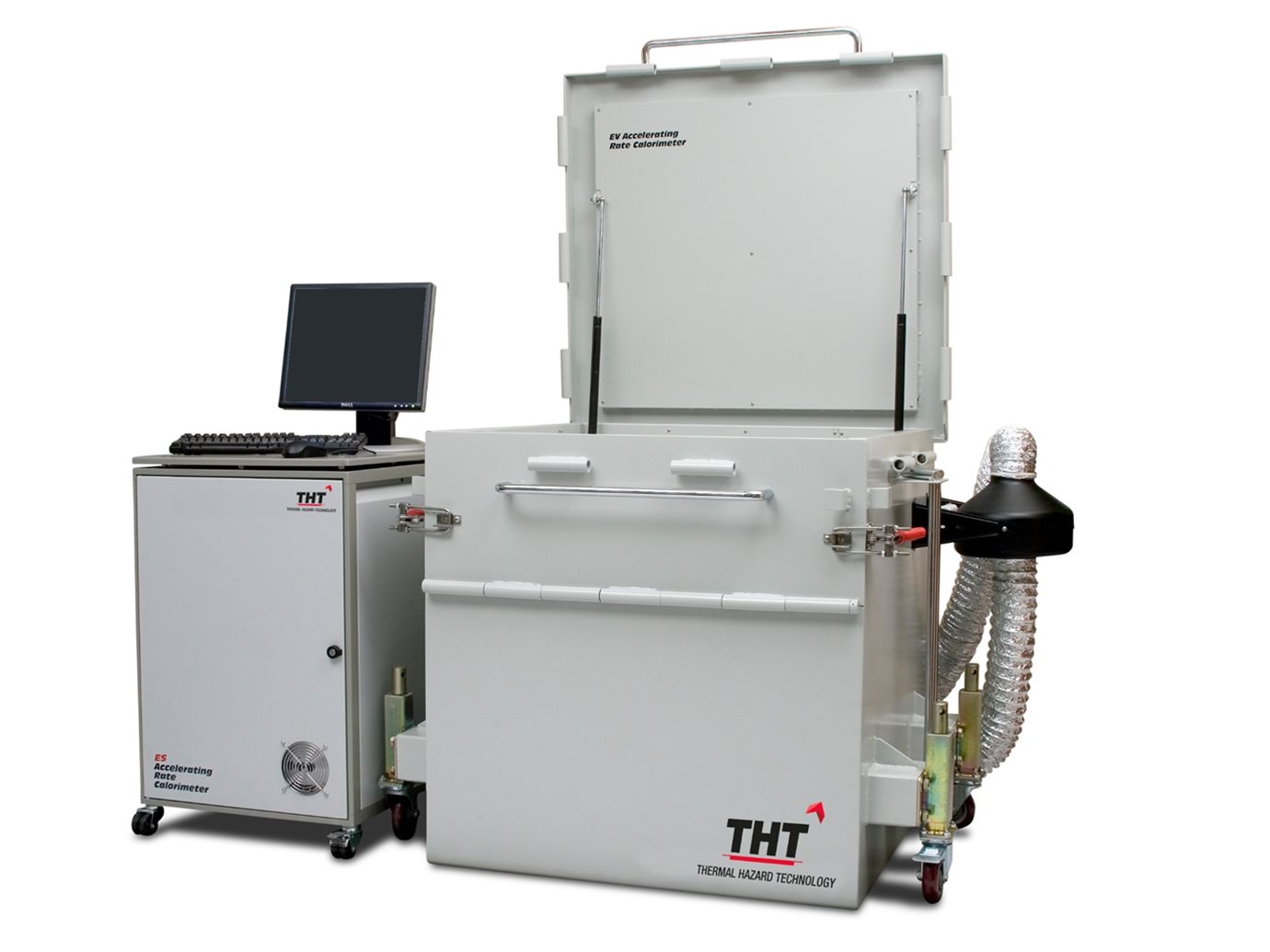 The EV calorimeter is necessary for larger batteries, modules and small packs, power tools, satellite, military and associated applications. The EV calorimeter is used when variation of heat release over surface area (MultiPoint measurement) is to measured and associated thermal management applications. The EV calorimeter is rugged and is sited in a secure Containment Vessel.