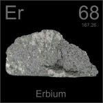 Erbium is a chemical element that originated in Ytterby, Sweden. It was first mentioned in 1842 and observed by G. Mosander. “Er” is the canonical chemical symbol of erbium. Its atomic number in the periodic table of elements is 68 with a location at Period 6 and Group 3, belonging to the f-block. The relative atomic mass of erbium is 167.259(3) Dalton, the number in the brackets indicating the uncertainty.