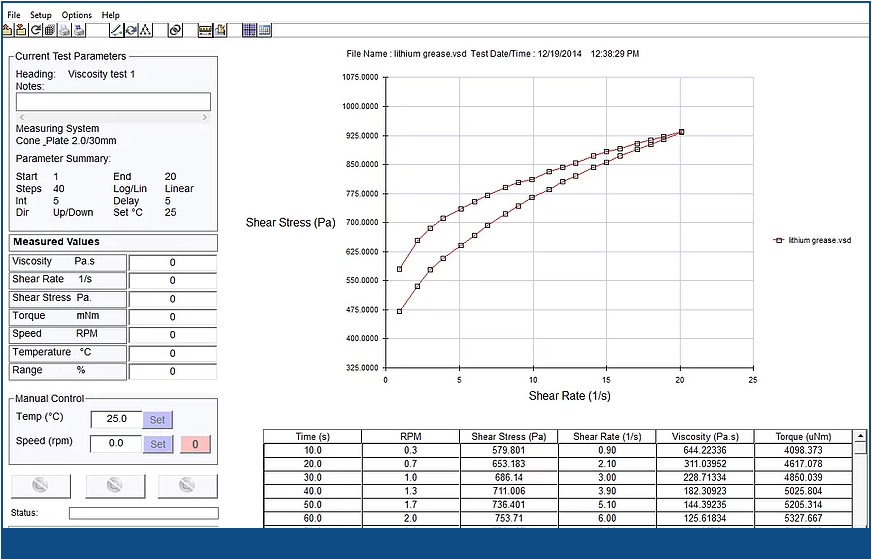 This test method is the generally the preferred way of generating flow and viscosity curves.