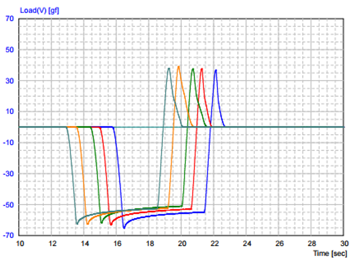 본 기기는 저속의 probe를 점.접착제에 일정한 하중으로 가한 후 떼면서 얻어지는 힘을 측정하는 method로 tack을 측정하는 기기로서, probe의 재질과 크기, 압축하중, debonding rate은 의뢰하시는 분의 요구사항 또는 제안된 사항으로 시험이 가능합니다.